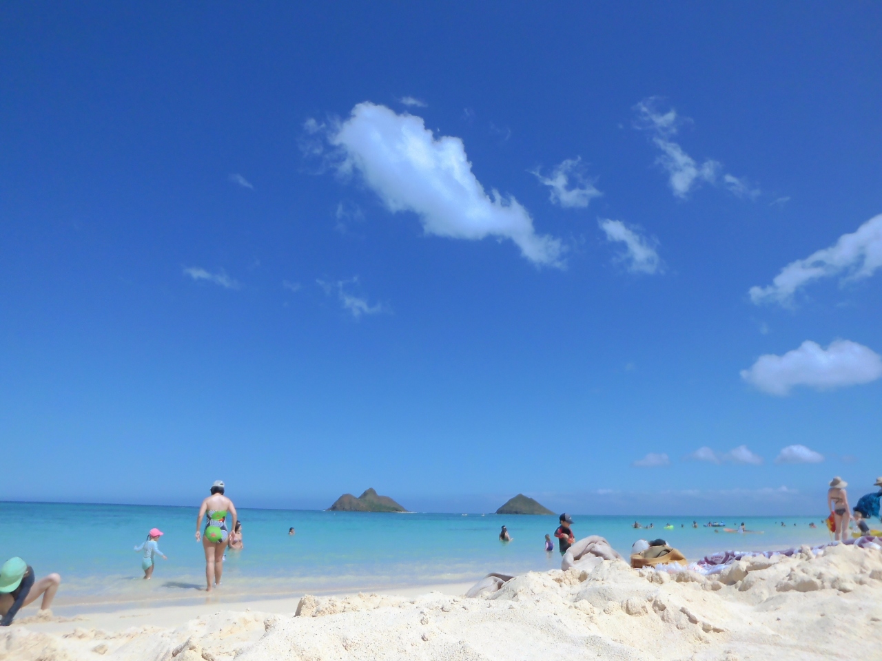 ラニカイビーチには何度となく訪れていますが、久しぶりに天気の良い週末とあってか、駐車スペースが見つけられない車で、付近は大渋滞でした。これほど混みあっているのは初体験でした。幸い私は20分程度で見つけることができてラッキーでした。この日は本当に天気が良く、3月とは思えない暖かさでした。