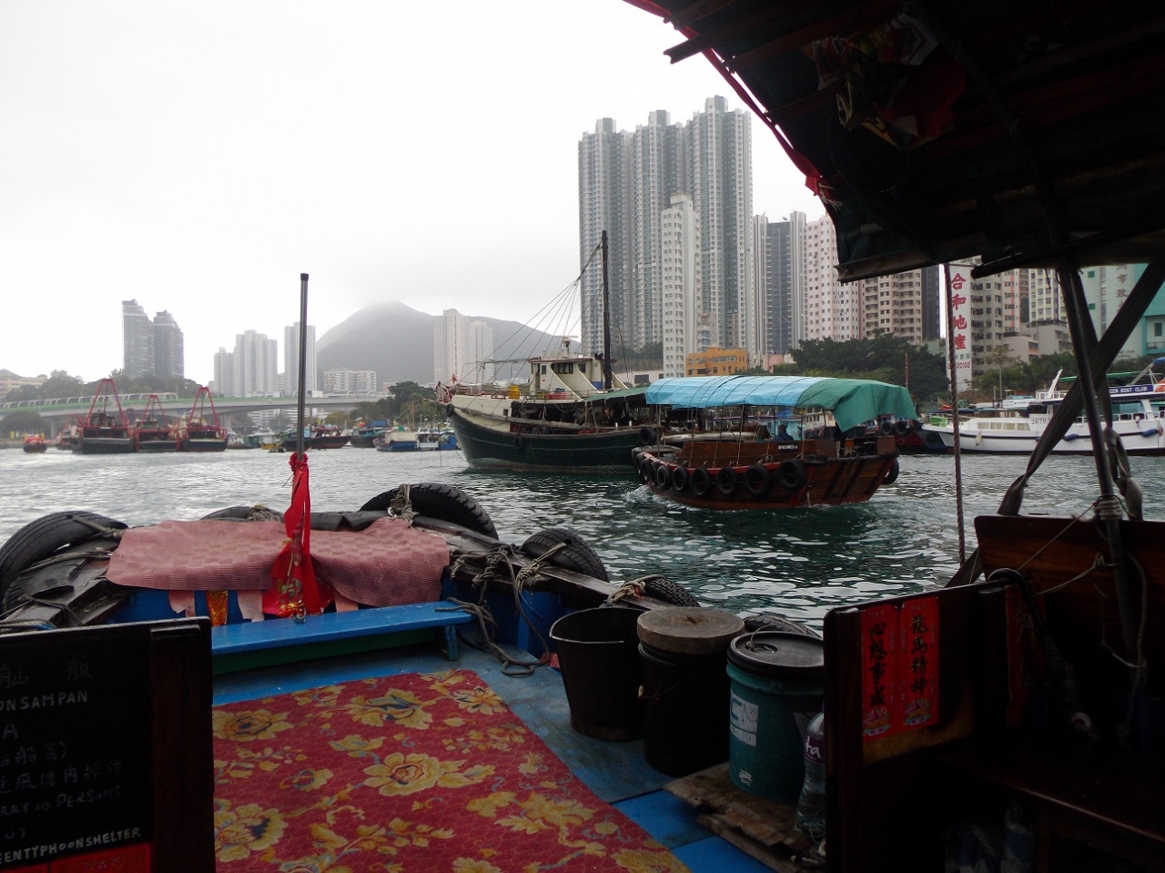サンパン船乗り場も見つけましたが、ここは庶民の足である渡船に是非乗ってみようと試みて乗り場を探していると、おばあちゃんが操船する舟が近づいて来て乗れと・・・。