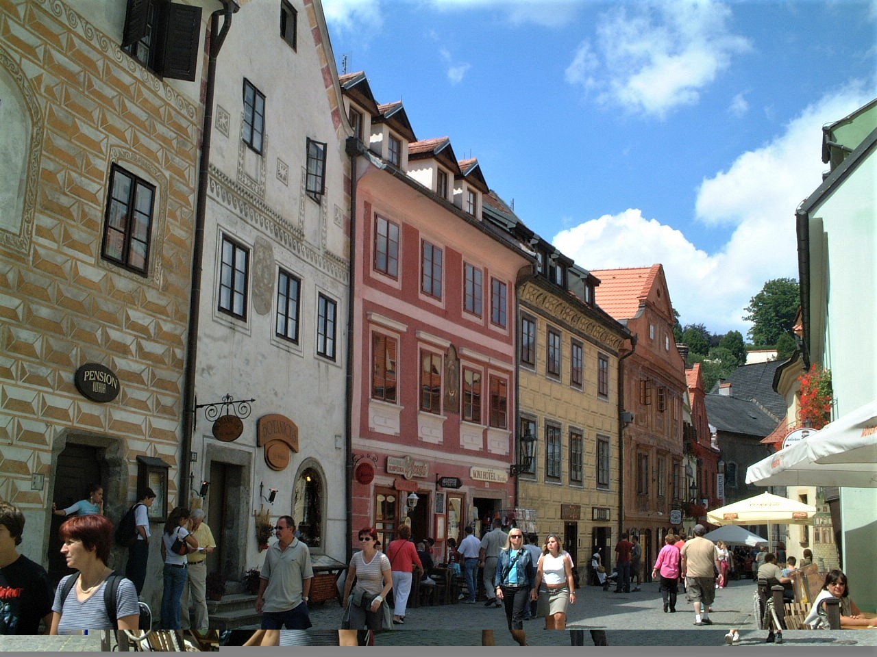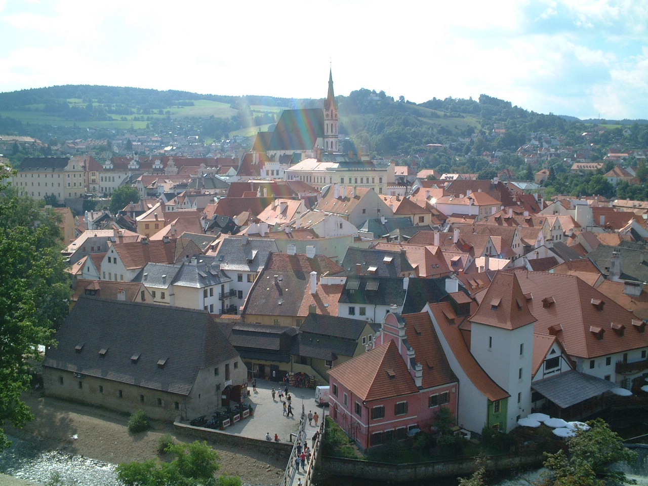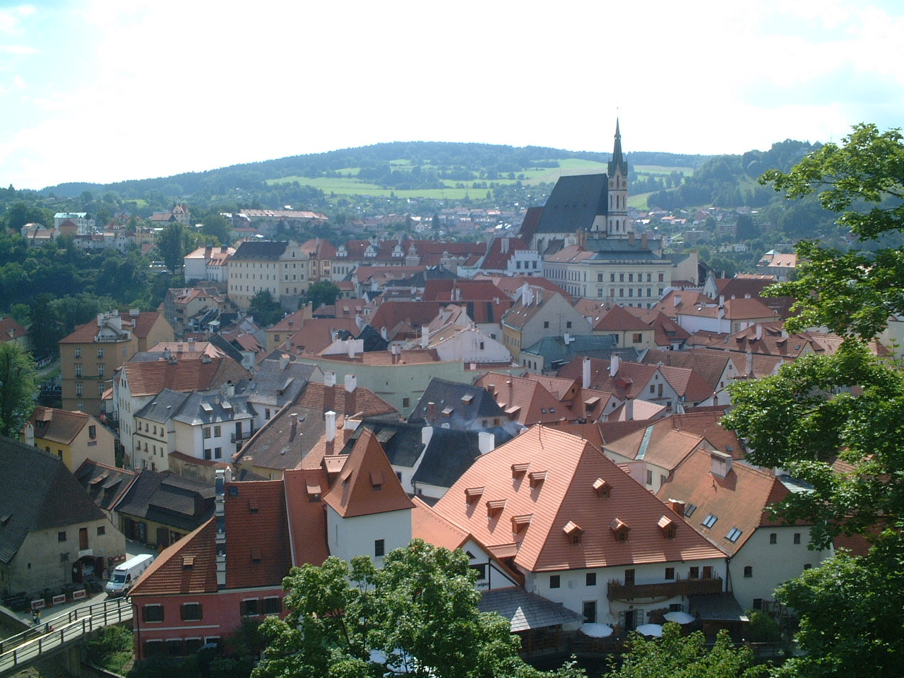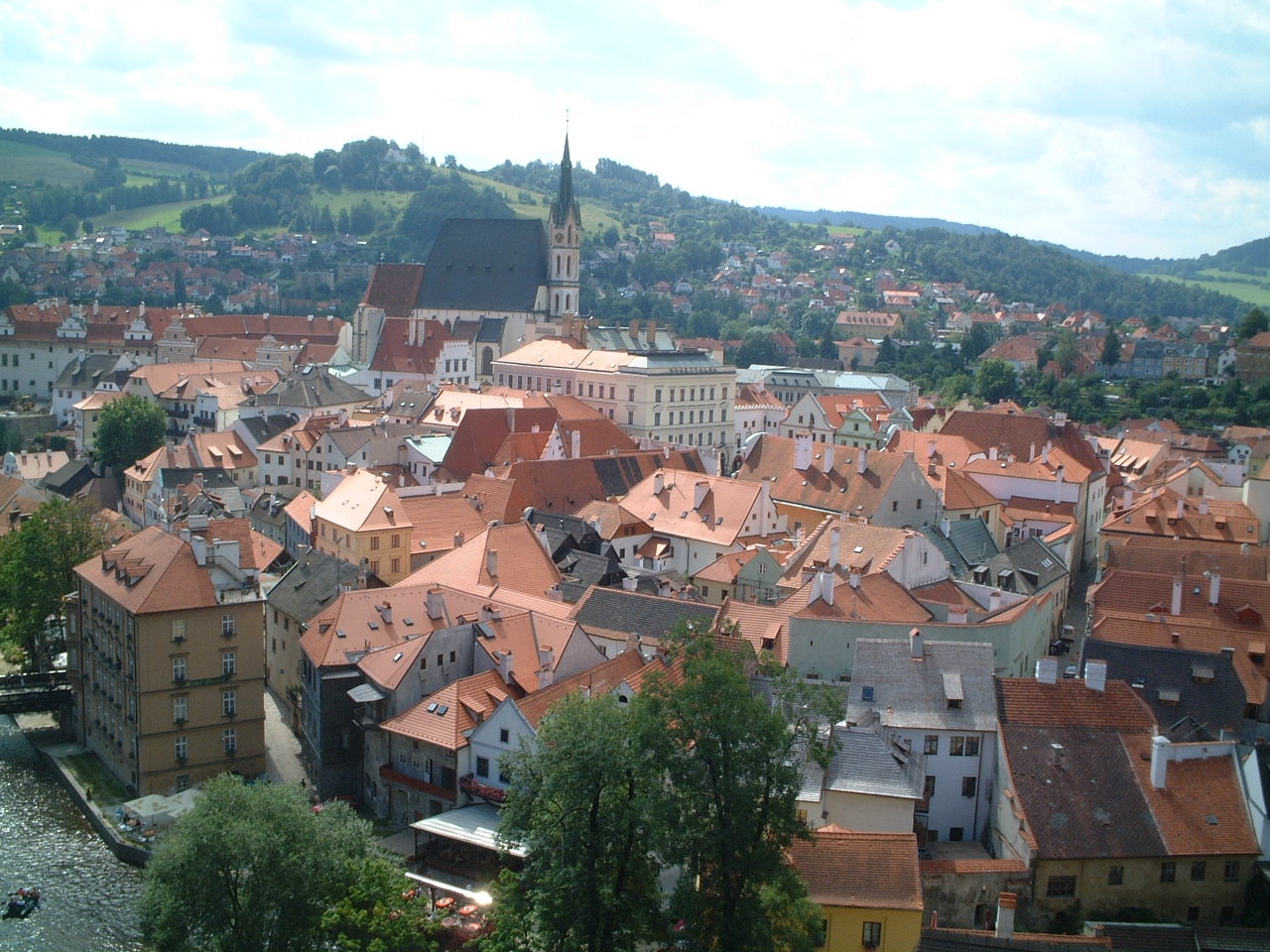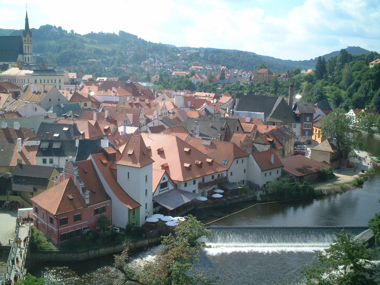 蛇行したヴルタヴァ川に守られ、高台の城を中心に旧市街のルッネサンス時代の町並みが残る小さな町です。