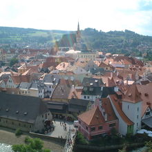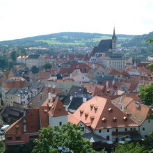 高台にあるチェスキークルムロフ城からは、旧市街全体が見渡せました。