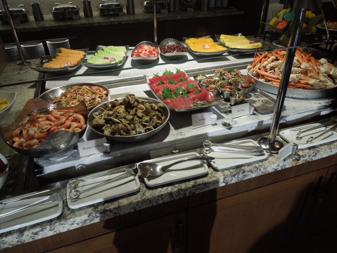 プリンスホテル内にあるビュッフェレストラン。ディナーで利用しました。シーフードビュッフェで、エビ、カニ、アサリなど、種類豊富です。お寿司、手巻き寿司もあり、とてもおいしく頂いてきました。シーフード以外では、お肉、サラダ、ハワイアン料理、デザートなどもあり、とても楽しめました。どれもおいしく、おすすめレストランです。店内は、混雑していたので、予約は必要でと思いました。