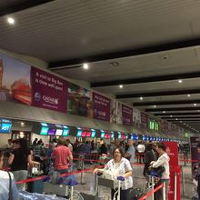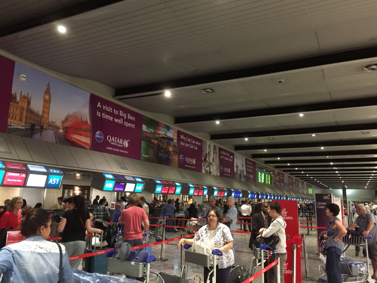 ロングホールのフライトはだいたい深夜便。深夜でも周りの喧騒は凄まじいです。