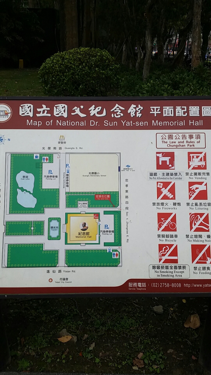 「国父紀念館」は、中華民国の父といわれる孫文の生誕百年を記念して、1972年に建てられた紀念館だそうです。本館の中には、国父・孫文の大きな銅像が鎮座しています。