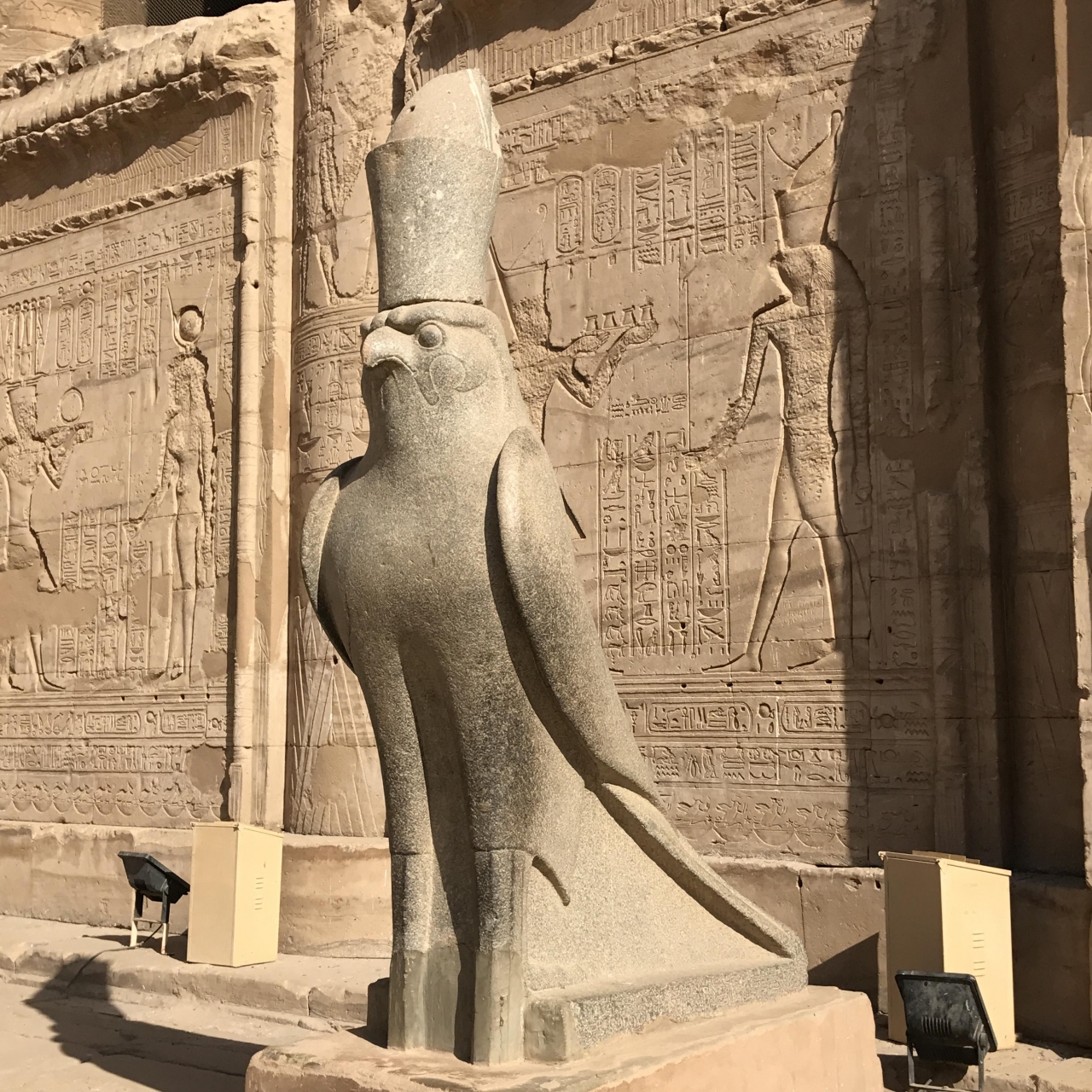 建物の前には、エジプト航空のロゴのホルス神が立っていますが、かわいいです。