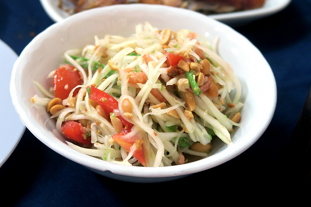 ちょっとわかりにくい場所にあるが、美味しいガイヤーンを食べたいならココをおススメします。店の前でチキンを丸ごと焼いています。若い方なら丸ごと一匹食べられると思いますが、年寄りなのでビールとハーフをいただきました。柔らかく薄味で食べやすいです。