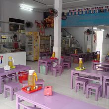 チェーの有名店のようです。平日午後3時頃訪れましたが客は一組のみ。壁にメニューが書かれているのでとりあえず最初に書いてあり唯一知っている「CHE THAP CAM」(15000ドン)をオーダー。これは盛り合わせ、いろいろな具材が一通り入っているチェーです。これをオーダーしとけば間違いないというやつです。ナッツ類や小豆などのまめ類、タピオカ、白玉のような団子などが入っていました。お味はほどよい甘さでとってもおいしかったです。散歩で疲れ切った身体にしみ込みました。ジャスミンティーは無料で飲めます。