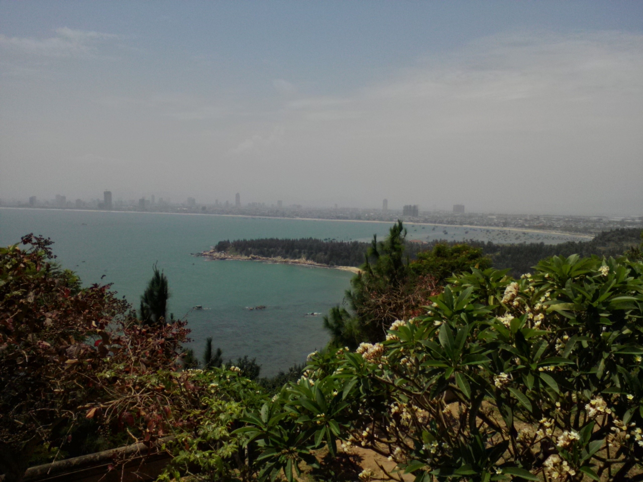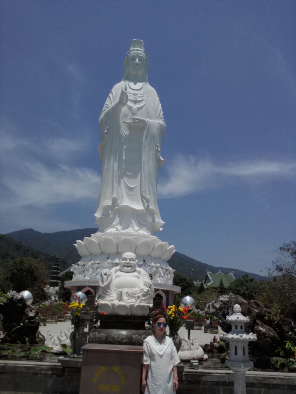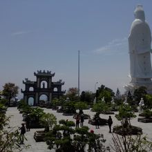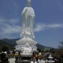 リンウン寺にある巨大な観音像。ミーケービーチからも見えます。その高さ67m(らしいです)。間近で見上げればさらに巨大に感じられます。場所も高台にあるため眺めは抜群!青い海とその向こうに見えるダナン市街がすばらしいです。日差しはきつかったですが木陰に入ると風が心地よく感じられます。観音像の足元の内部にも3体の真っ白な仏像が安置されています。中はひんやりとしていて観光客の格好の避難所となっていました。