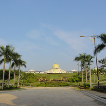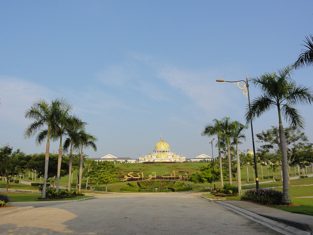 王様滞在中で旗が掲げられていました。世襲制の王ではなく州のスルタンが輪番制で王様になってるそうです。王宮を門外から覗き見るだけでしたが、敷地はとても広いですね。門のところにいる騎馬兵や衛兵の近くに行っての写真撮影はOKでした。