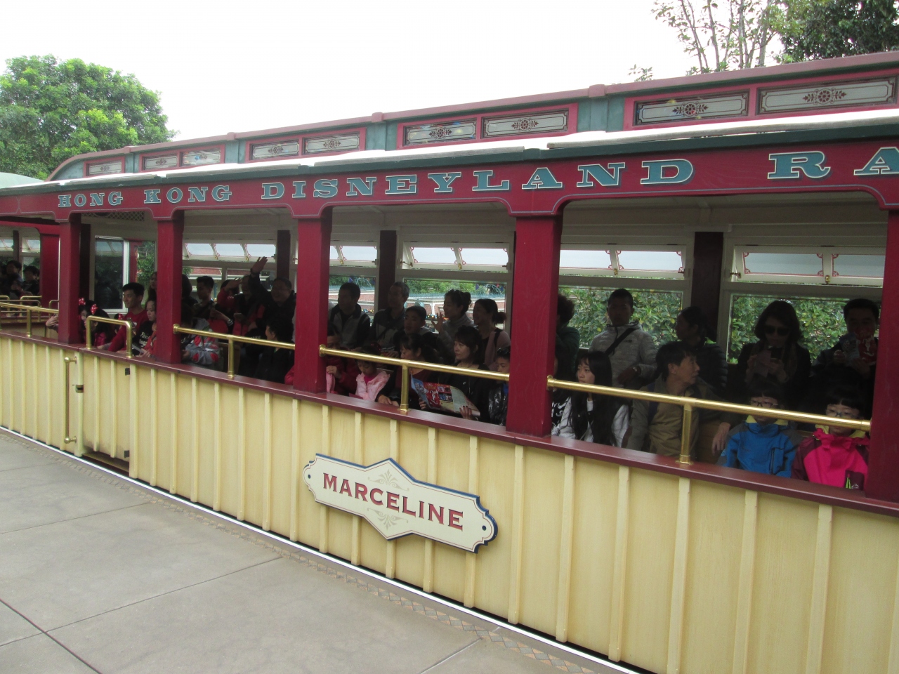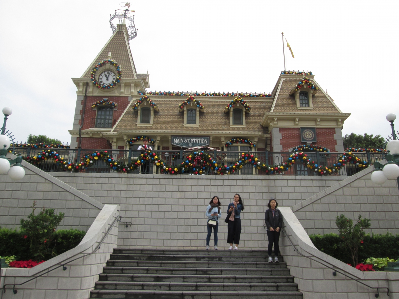 クリスマスシーズンに香港ディズニーランド鉄道を利用しました。メインストリート・ステーションはカラフルなボールが付いたクリスマスの飾りが付けられ素敵でした。駅構内ではクリスマスソングが流れており、すっかりクリスマスモードになっていました。