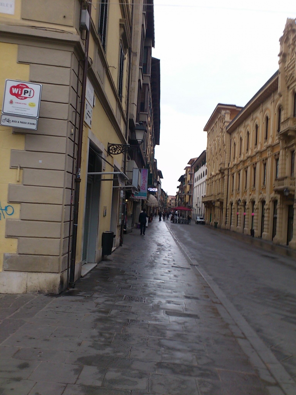 ピザの斜塔へはピザ中央駅からバスやタクシーという手もありますが、徒歩で行くとピザの街を満喫できるので、そちらをお勧めします。実際に歩いて見ると20分ほどで到着します。駅からアルノ川までの通りがこのコルソ イタリアと呼ばれる通りで、ピザの人たちの日常を肌で感じることができる場所です。