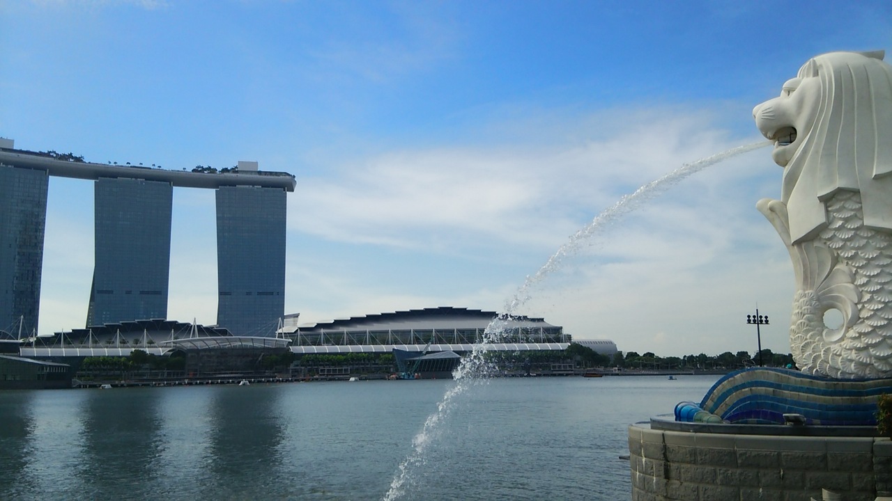 大きい方のマーライオンは、バックにマリーナベイサンズも写るので、多くの観光客が記念写真を撮っていました。