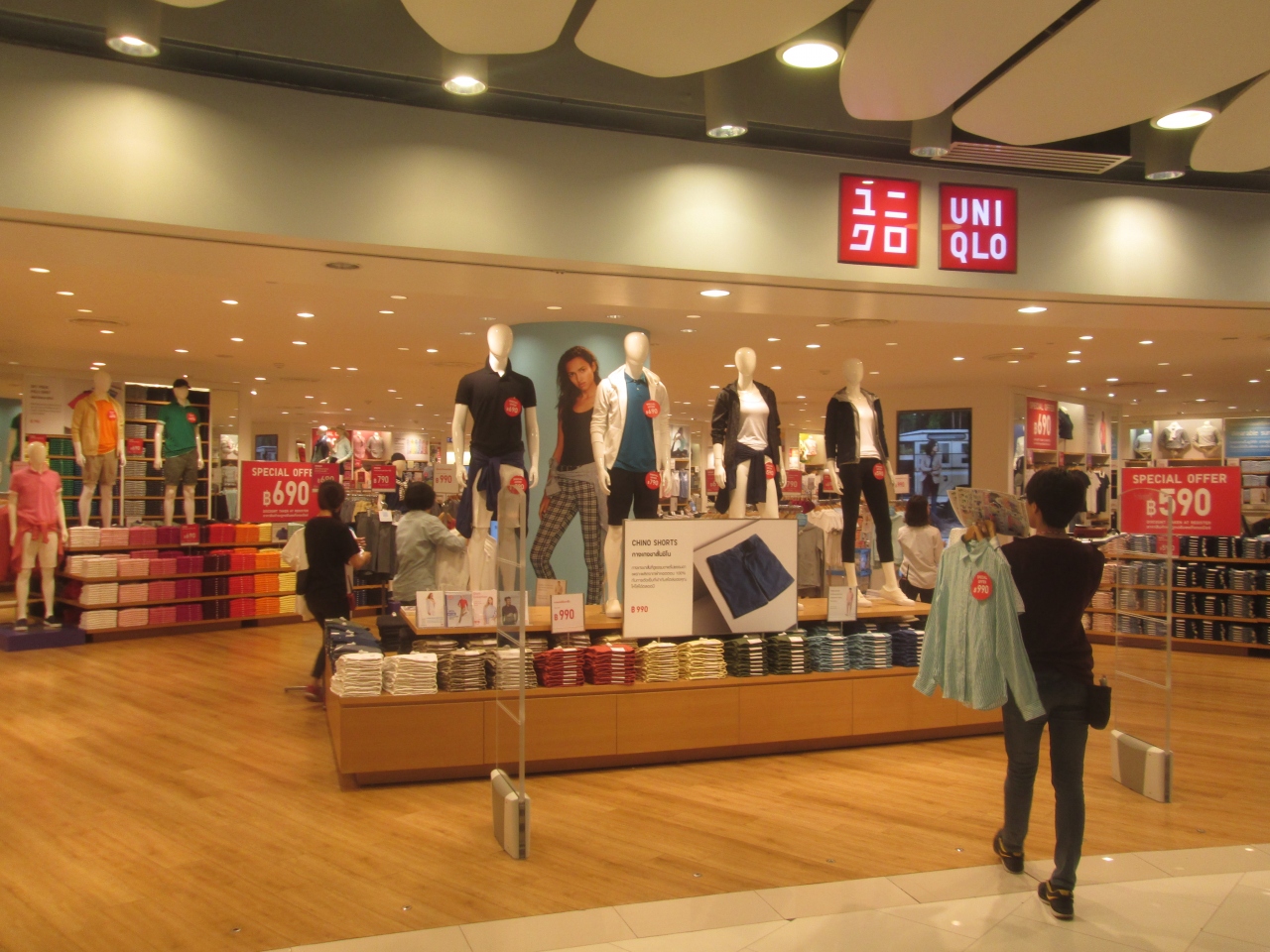 バンコクのユニクロではエントランスで店員さんが商品を持ってセールしています。日本では少し見かけない光景です。一方、店内では積極的に声を出してようこそみたいなことはなく、皆さん黙々と店内の商品を整理している印象を受けます。