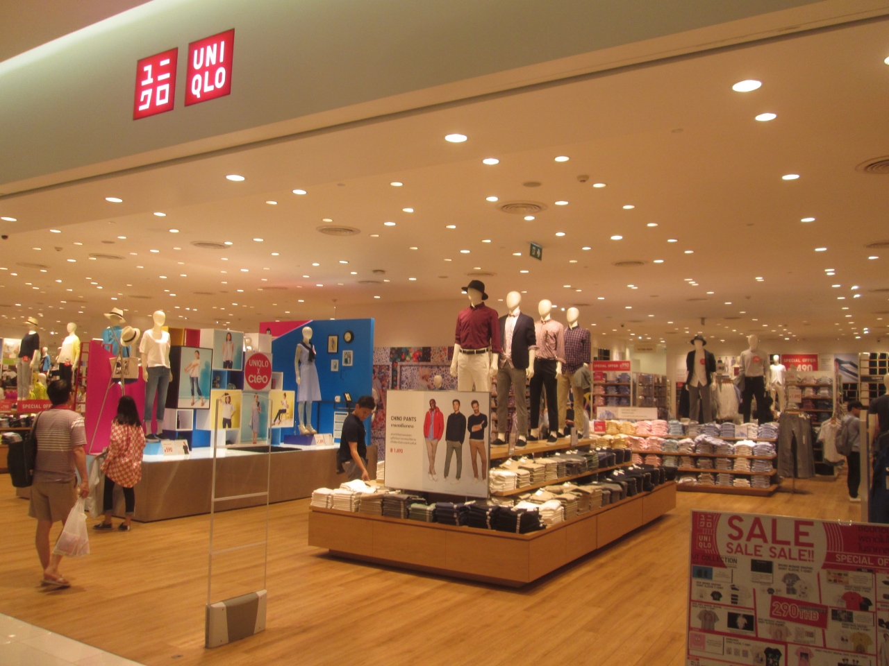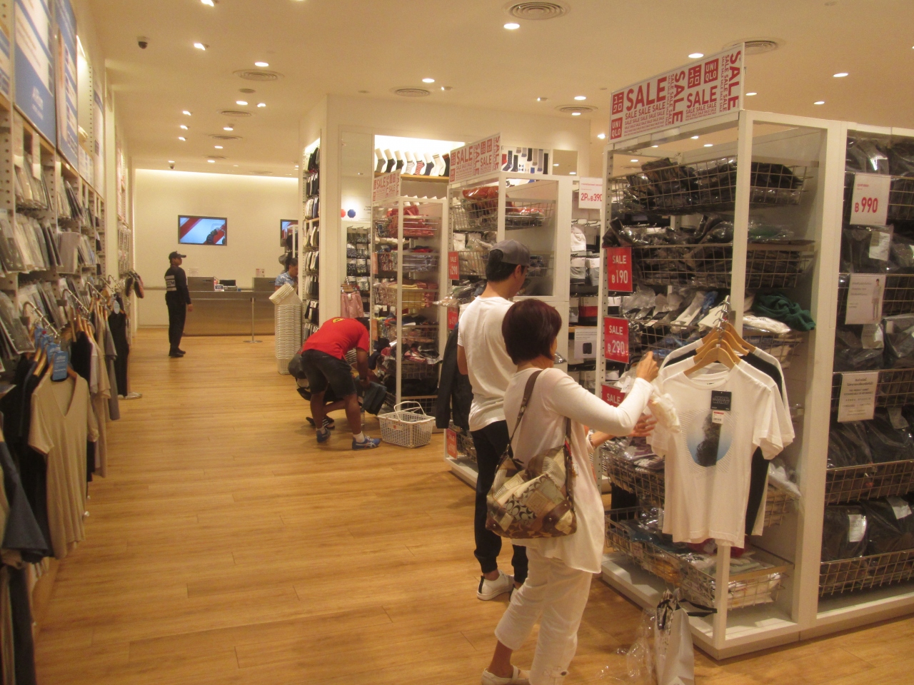 茶色のフローリングにレイアウトは日本のユニクロと変わりませんが、店内は天井が高く、広々としていました。奥にもずらっと服類が並んでいました。試着室は完備されており、店員さんは愛想よくブースで対応してくれました。