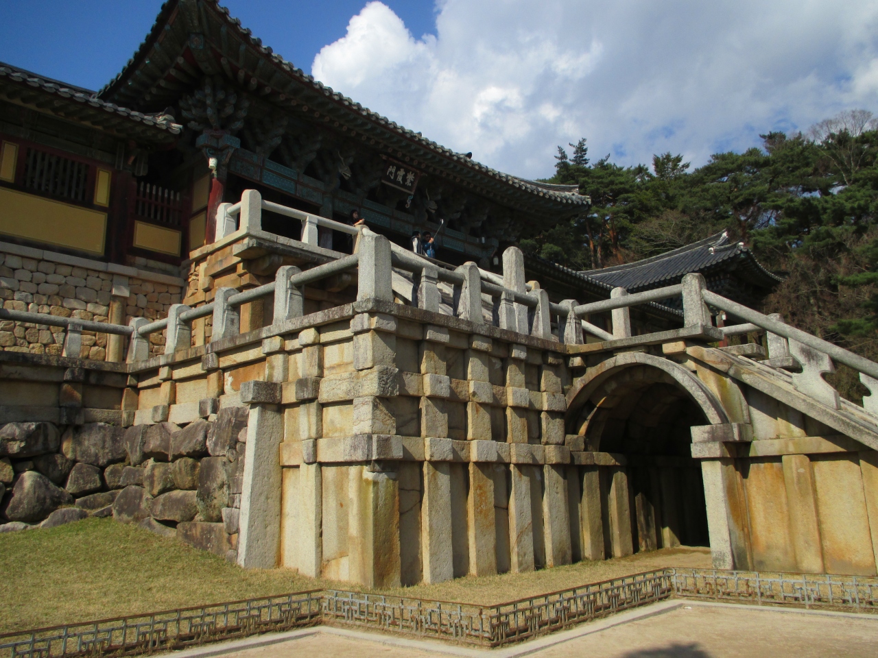 本堂にあたる釈迦牟尼仏を安置する大雄殿に続く紫霞門に上がる階段で、