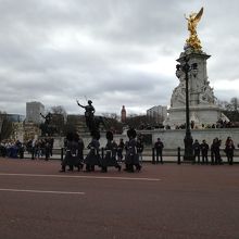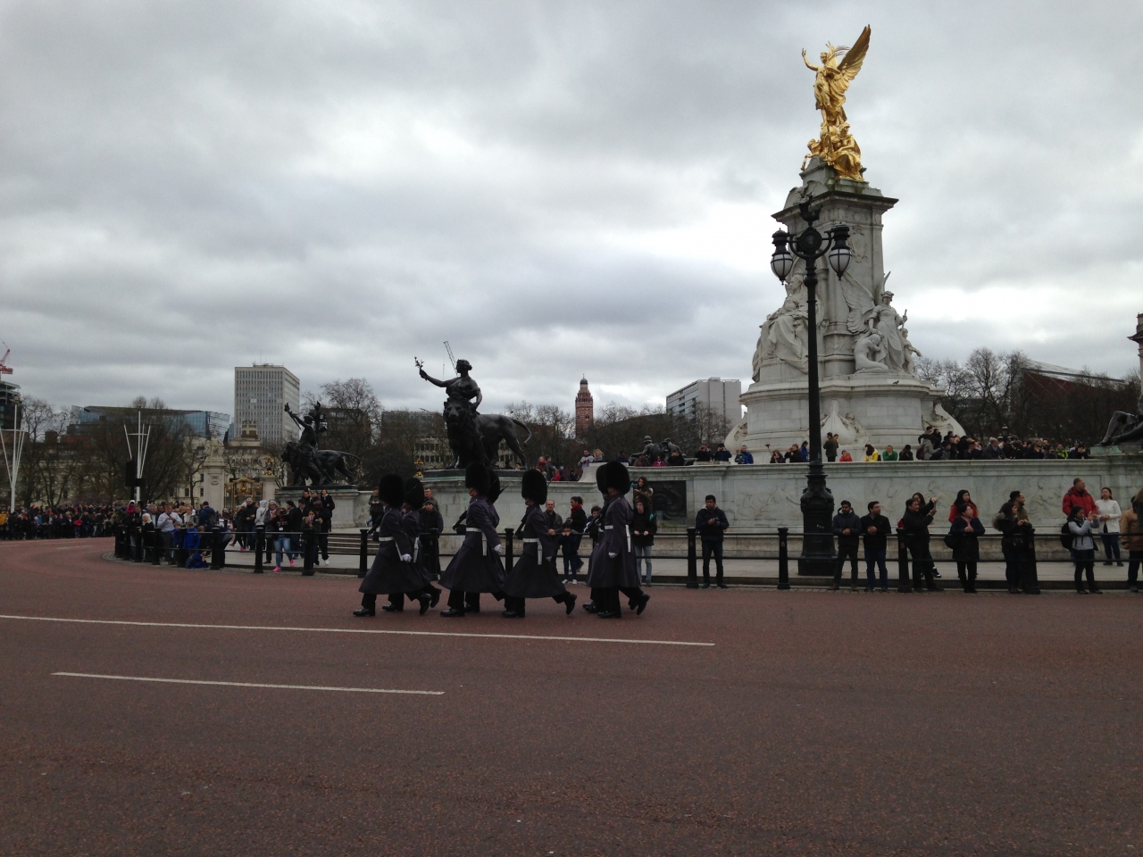 バッキンガム宮殿の見学は夏季のみなので、11:30から行われている衛兵交替式を見にいってきました。11時頃に広場に到着すると、すでに沢山の観光客であふれかえっていました。ヴィクトリア女王記念碑のまわりの道路沿いで見ましたが、少し遠かったので、もう少し早くきて前の方で見たかったです