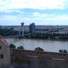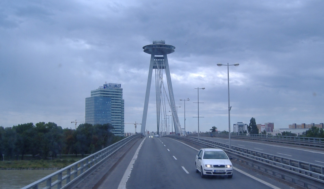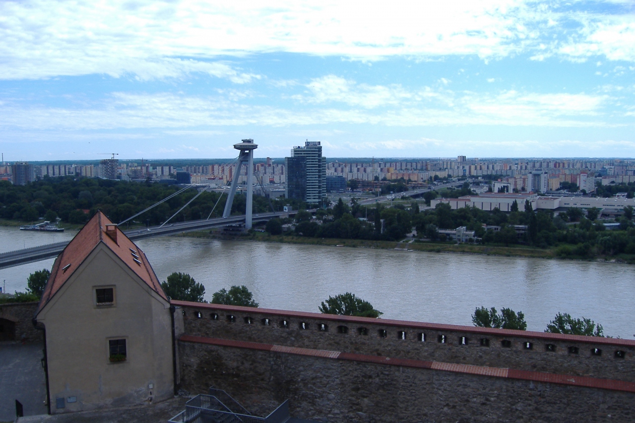 ハンガリーのブタペストから訪れて、大河らしく悠々と流れているドナウ川に架かる展望タワーのあるSNP橋を渡って、ブラティスラヴの街に入りました。