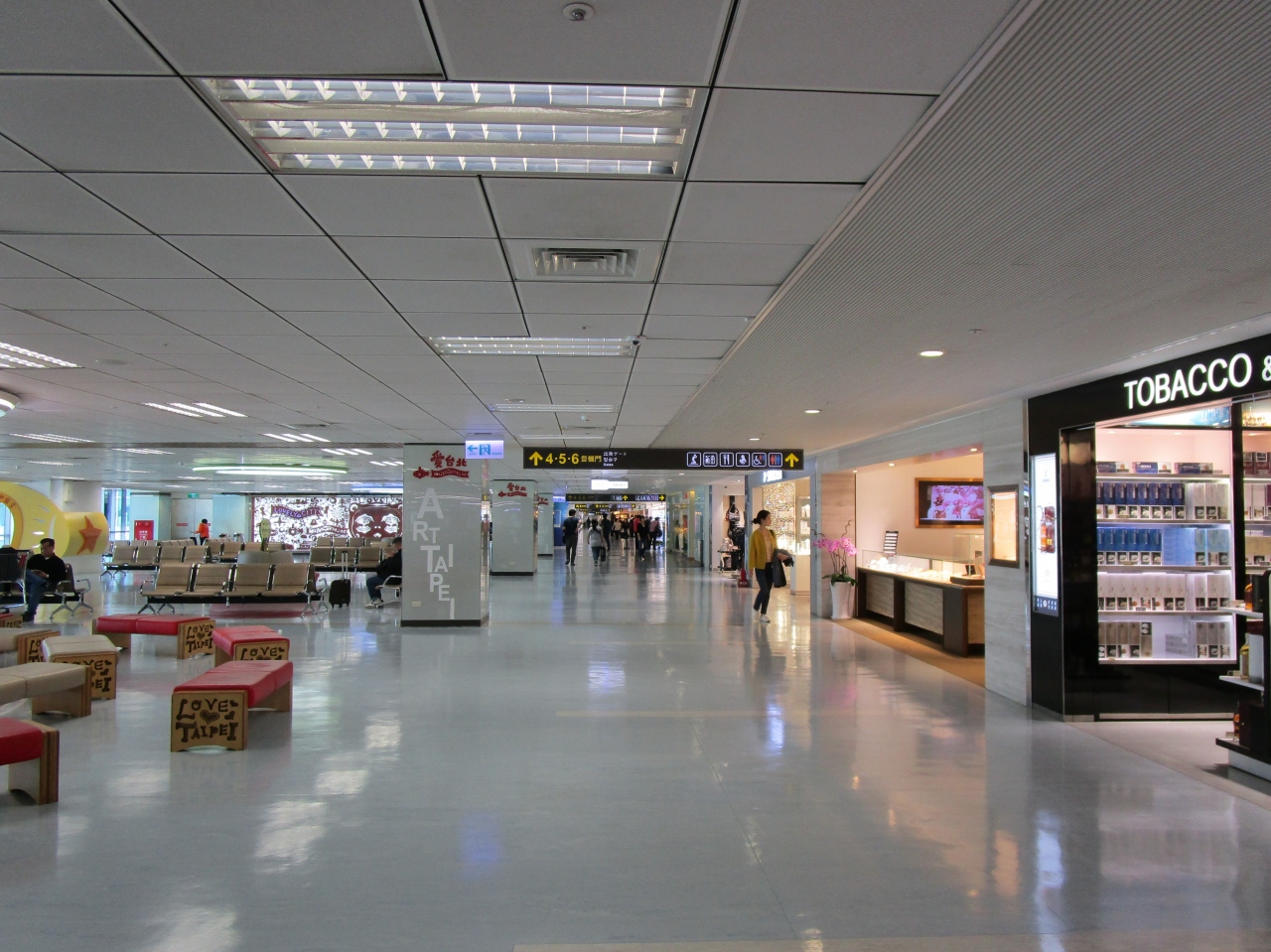 台北の中心地に近い、アクセス抜群の空港です。地下鉄MRTの駅が空港に直結していて、台北の中心まで20分ほど。改札口も、スーツケースで通りやすくできていました。ターミナルビル内には、レストランやショップが多く入っていますが、食事をするならば、出国審査前の方がお店がたくさんあります。
