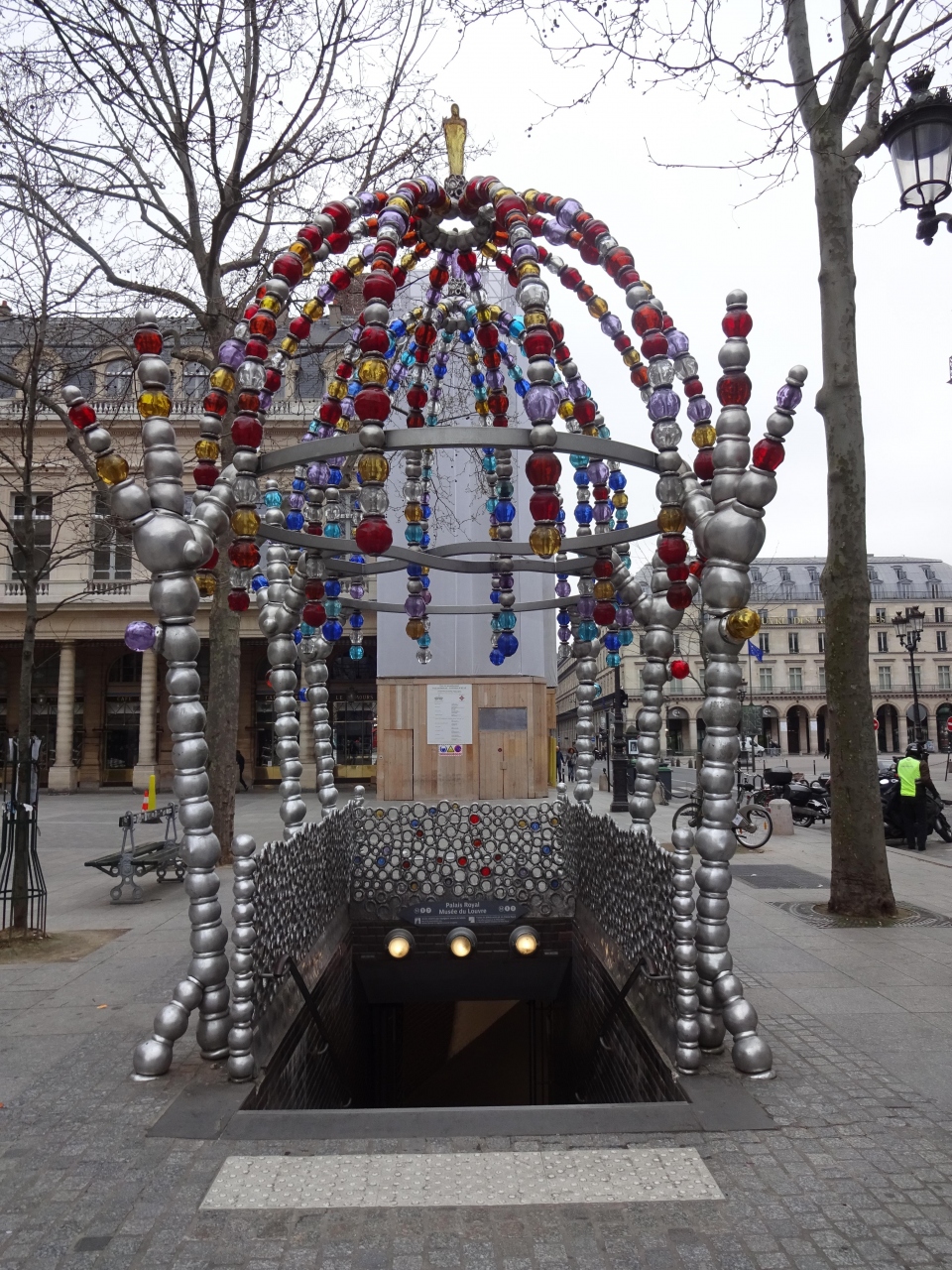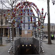 宿泊ホテルの最寄り駅「パレ・ロワイヤル・ミュゼ・ルーブル」、まさにパレ・ロワイヤルとルーブル美術館の間に入口がありました。メトロの駅はルーブル美術館直結で迷うことはありません。地上からメトロの入り口のオシャレな事。
