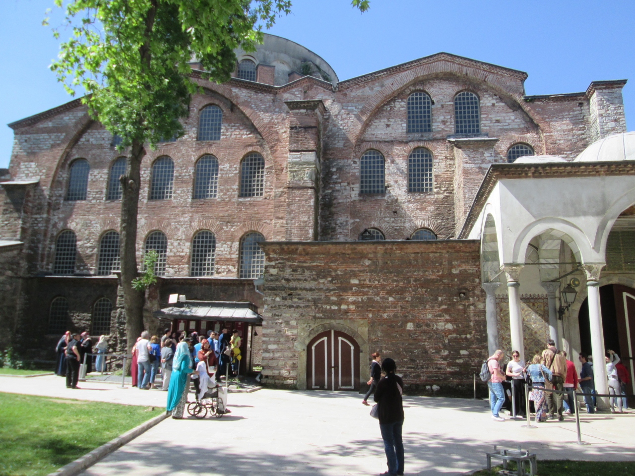 トプカプ宮殿の第一の門「皇帝の門」をくぐって入場したところにアヤ イリニ教会があります。教会の先には、2つの塔が特徴的な第二の門があります。混雑する宮殿なので、急いで歩くと見逃しそうですが、イリニは平和を意味があり、イスタンブールで最古の教会なので見どころのひとつでした。