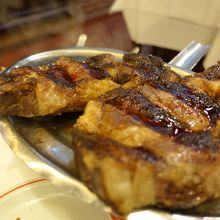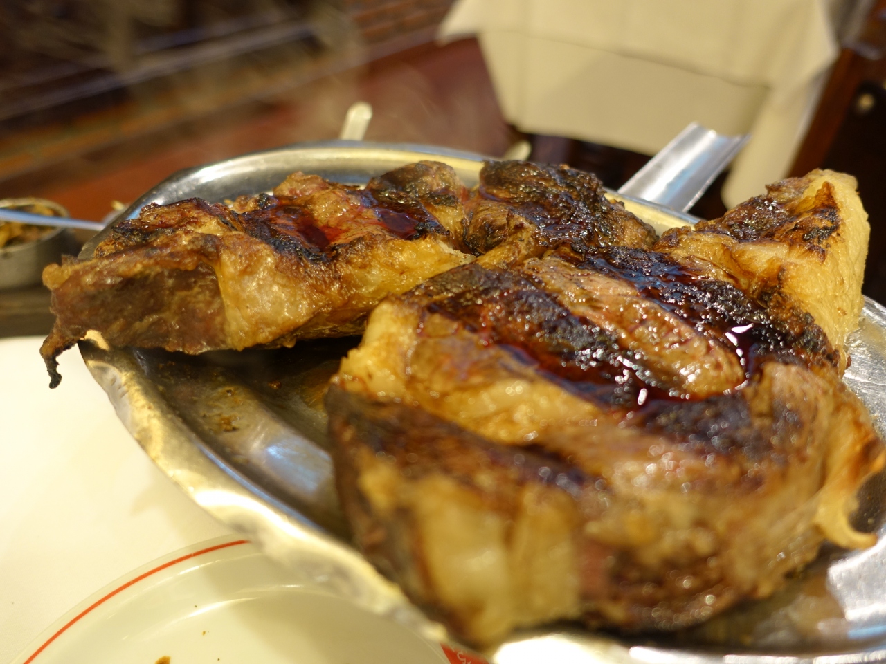 アルゼンチンと言えば「牛肉」なので、ガイドブックにも掲載されているこちらのお店に伺いました。店内はとても広く、入口では牛肉を焼くシェフの姿をガラス越しに眺めることも出来ます。