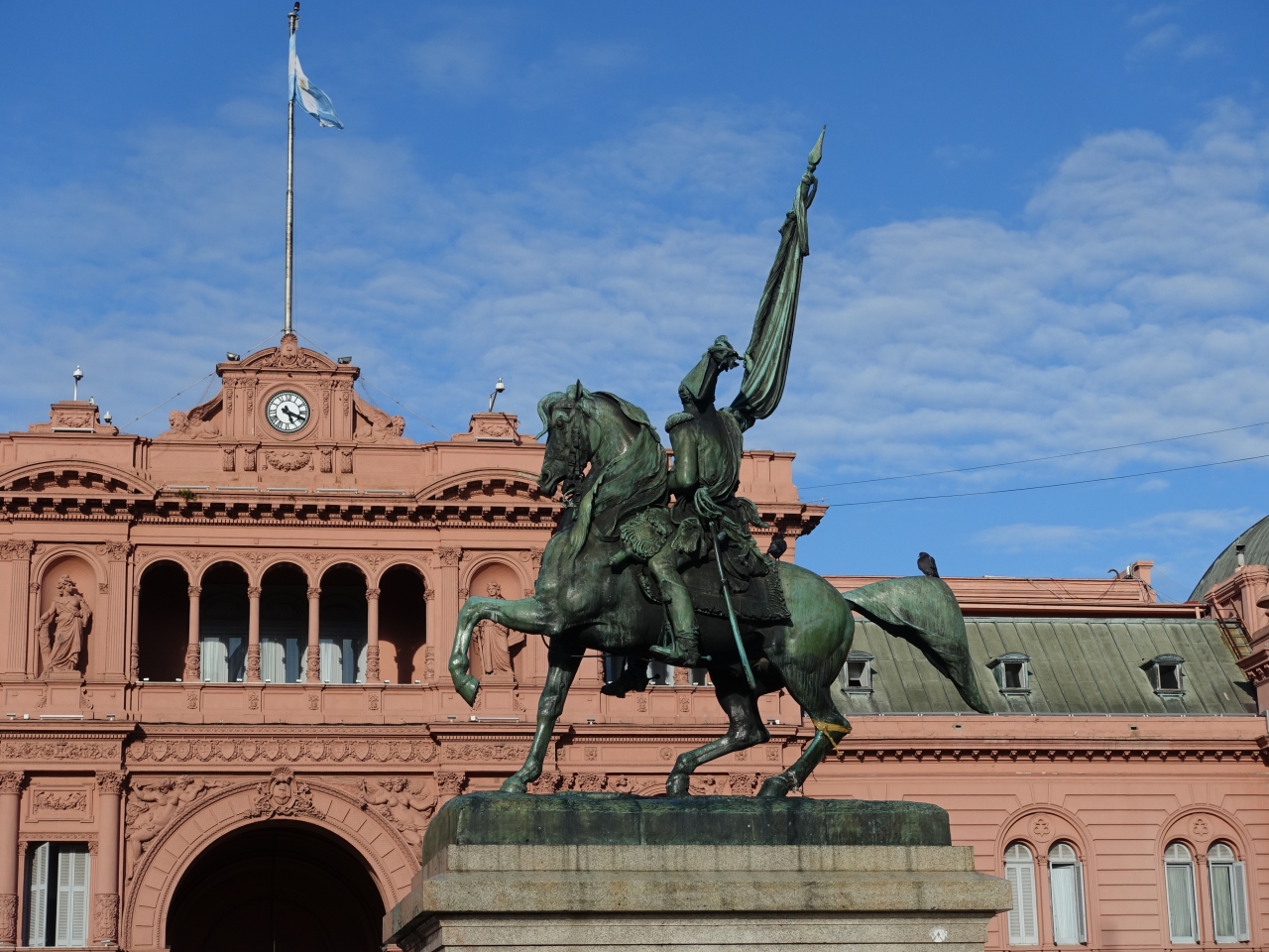 「マヌエル ベルグラーノ将軍」の見事な騎馬像が、5月広場に面した大統領府の前にあります。アルゼンチンの英雄で、国旗の創案者ということです。