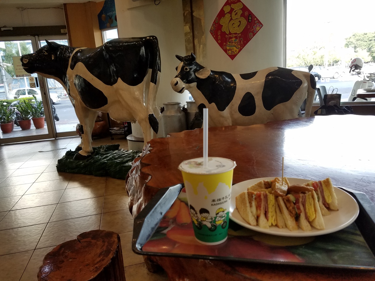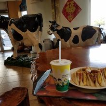 連れはサンドイッチ+杏仁ミルクのセットをオーダー。165元でお得です。