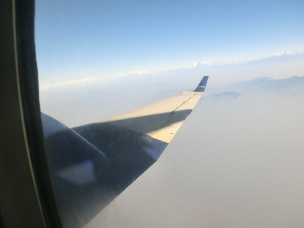 カトマンズのトリブバン空港からエベレスト遊覧飛行を体験しました。19人乗りの小型飛行機でしたが飛行機が雲の上に来るとエベレストやヒマラヤの山々が綺麗に見えました。