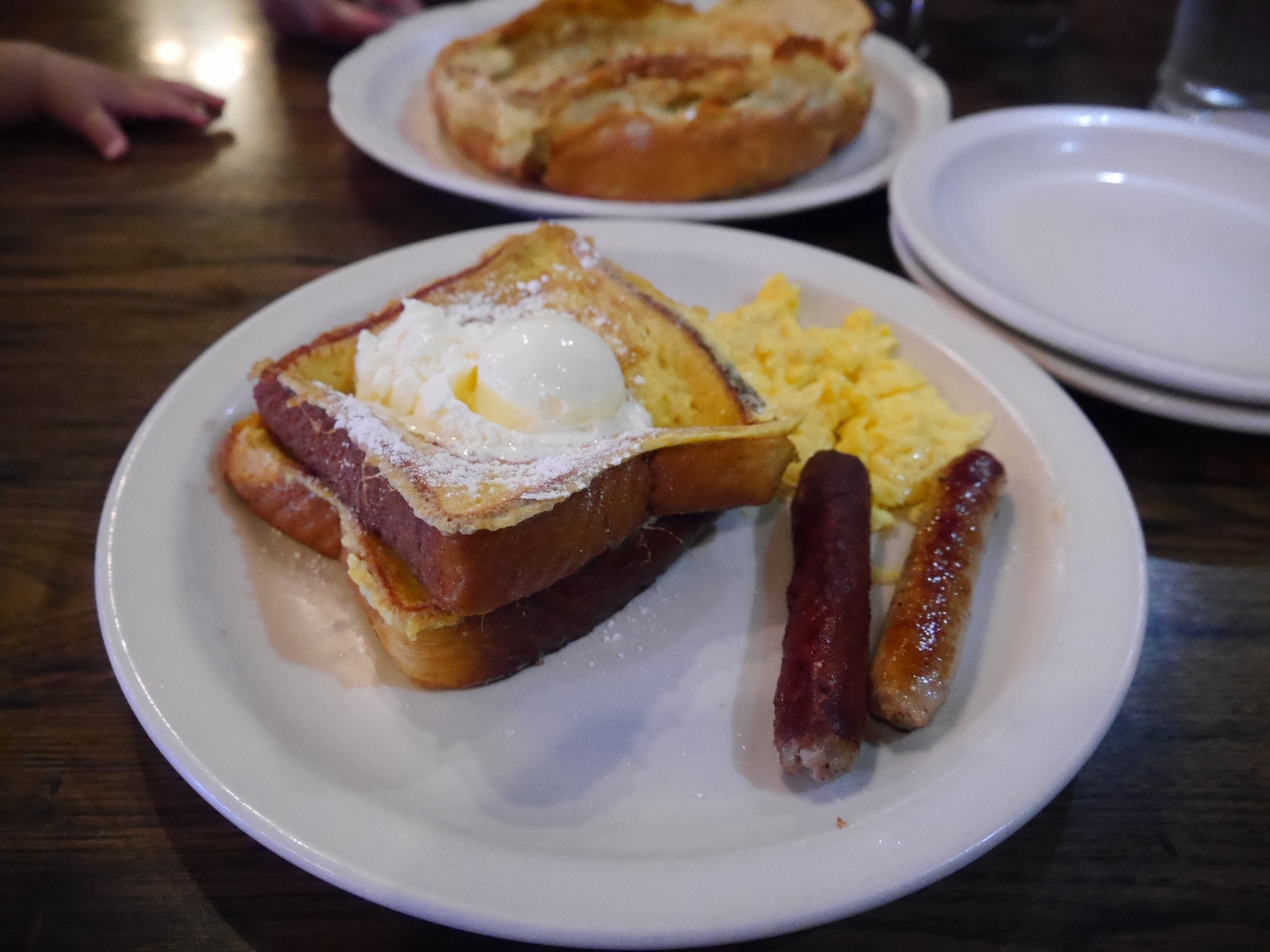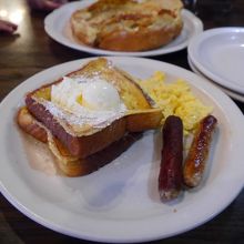 たくさんあるメニューの中から名物のダッチベイビーを注文しました。ホイップクリームたっぷりの通常のパンケーキとは全く違うものでした。外側はカリッと、中はしっとりモッチリとしており、付け合わせのホイップバター、レモン、粉砂糖をお好みで付けて頂きました。