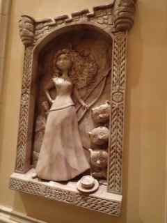 お城内のアトラクションでは"Once Upon a Time"Adventureに入りましたが、途中お城の階段を登って行く時にいろいろなプリンセスの彫刻画が壁に飾られていました。