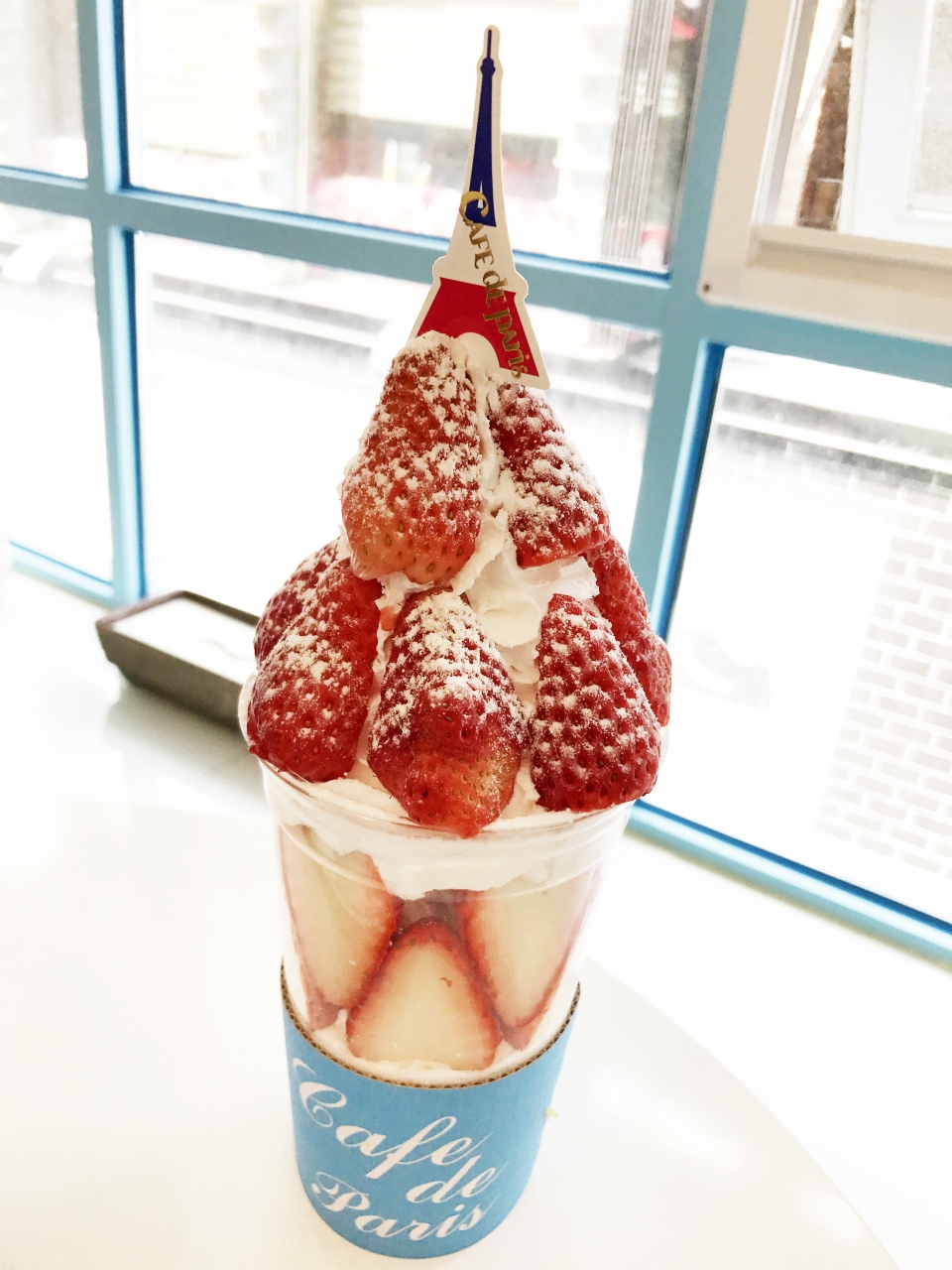 ホテルから近かったし、山盛りのイチゴのポスターに引かれて入ってみました。