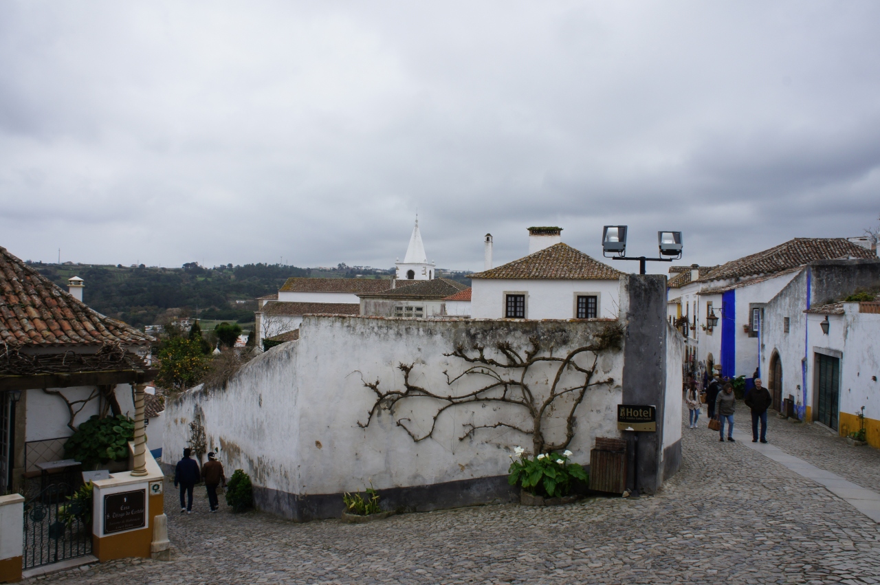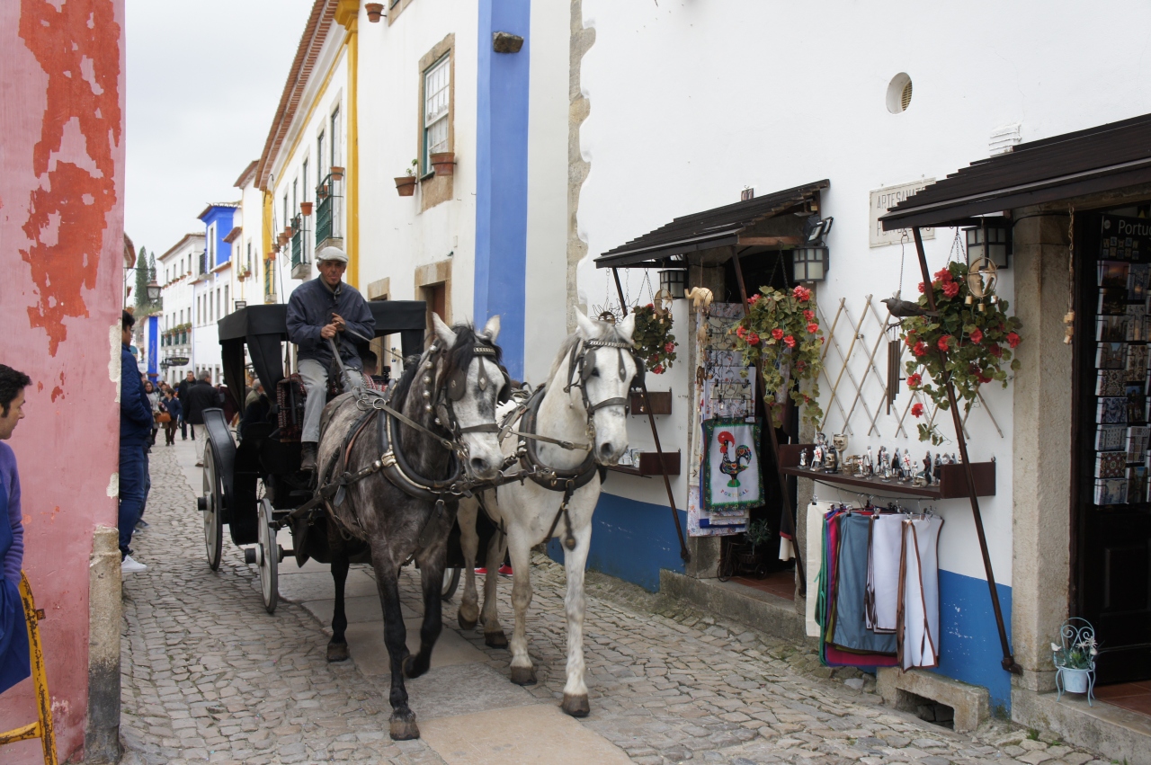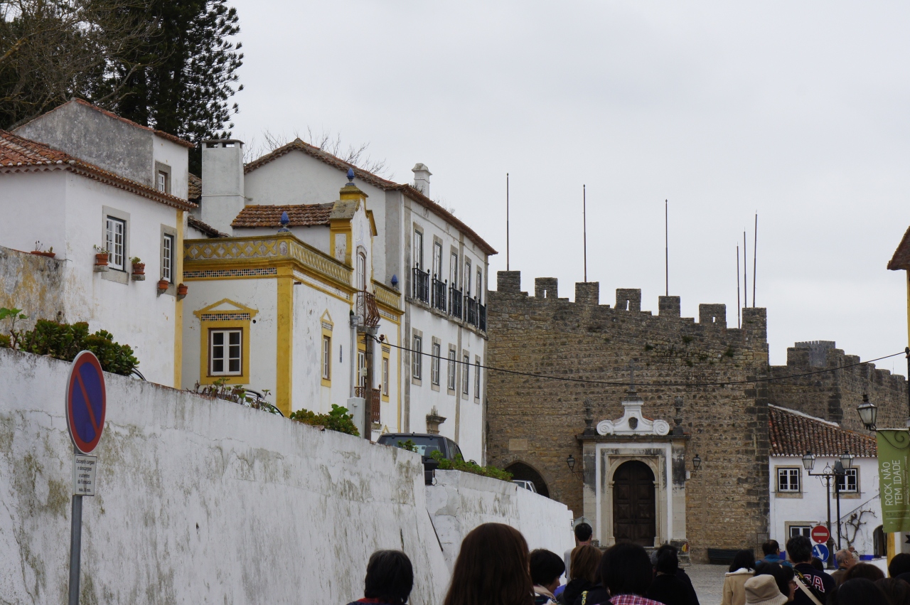 「谷間の真珠」と呼ばれるオビドスの村は白い壁の建物が通路の両側に建ち並び、とてもかわいい景観となっています。城壁がこの村を囲んでいて、村の通路からも屋根の上の方に城壁を見ることができます。村の建物はお土産店が多くてショッピングが楽しめます。私はFADOのCDをお土産に買いました。通路を歩いて行くと、白い教会が右側に見えます。教会の前では正装した楽団員がポルトガルの音楽を演奏していて、とてもロマンチックな気分に浸ることができました。