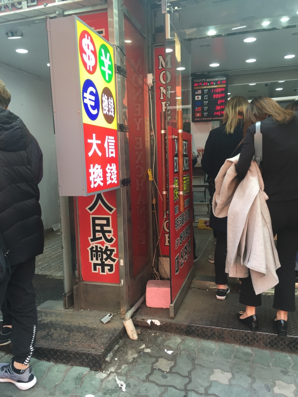 キャッシングは利用しないので、どこかしらで両替。色んな両替店のレートを横目に見つつ歩いていたらこちらはやっぱり他よりいいです。さすが混んでいました。