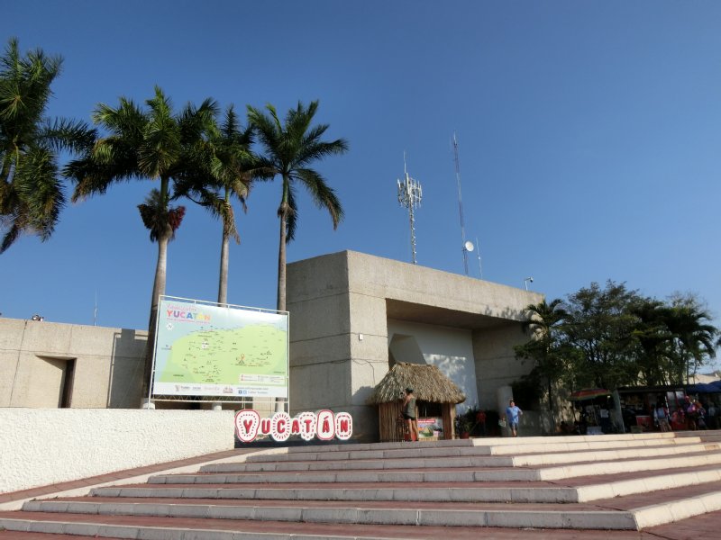 チチェンイツァ管理棟に入り、左手に書店とお土産屋さんがありますがその一角にバス窓口があります。写真のユカタンという文字の裏手あたりになります。