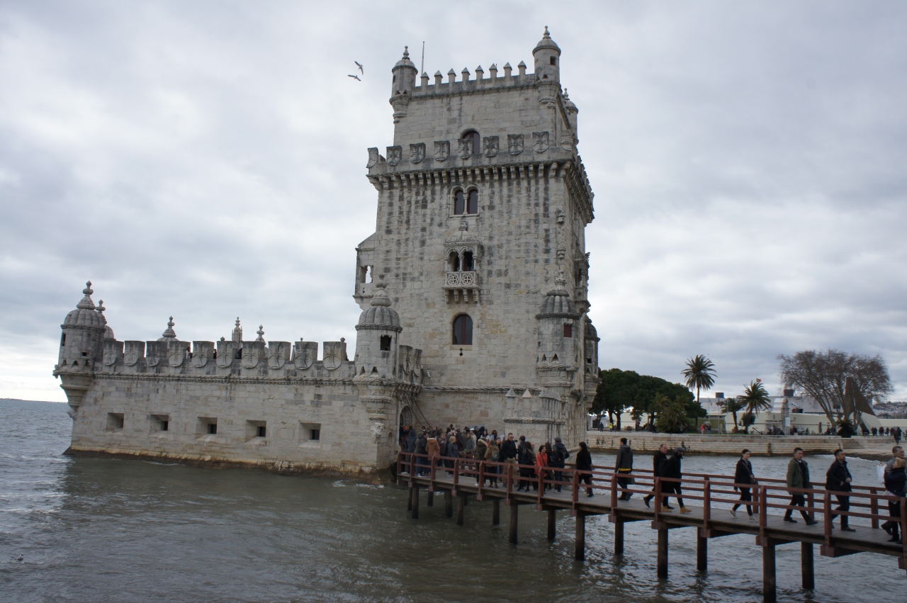 リスボン観光なら必ず訪れてほしいスポットの一つです。テレビの旅番組で見たことはありますが、海の中に建っているのには驚きでした。てっきり、海の近くの陸地に建っているものばかりと思っていました。この塔まではとてもよく舗装されていて、公園の一部になっているようです。岸辺から見る塔は海や対岸の景色と相まって絶景となっています。