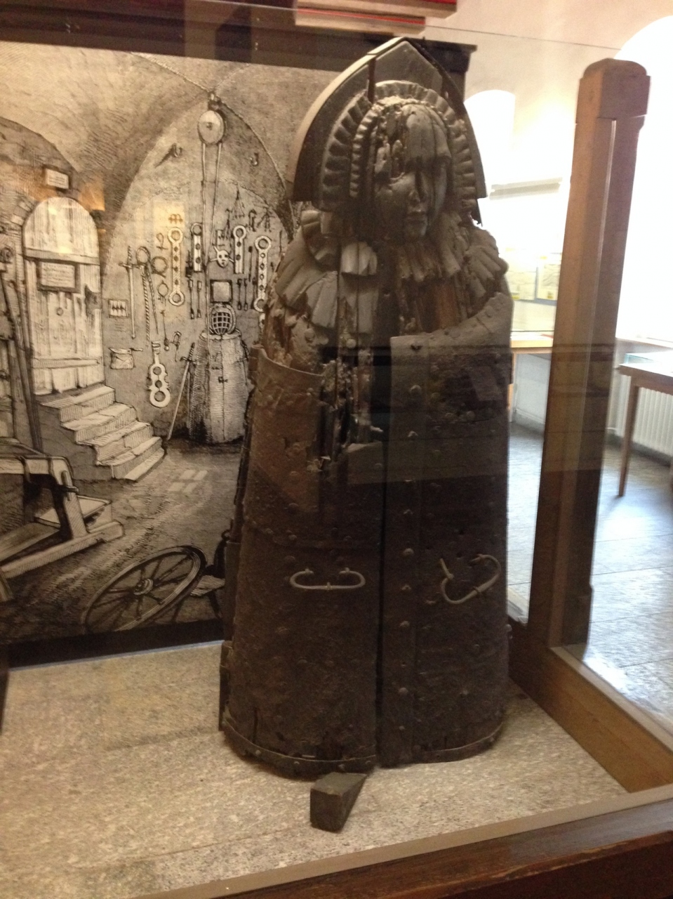 種々の拷問道具には、有名な「鉄の処女」(内側に針があって、中に入って閉じられると…。実際使われていなかったという説が有力です)あります。一見の価値あり。