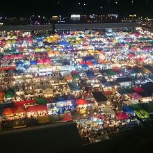 隣にあるショッピングモールの駐車場からみると色とりどりのテントがとても綺麗です