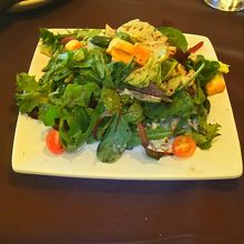 最初のサラダも大盛りで、付け合わせも大盛り。。