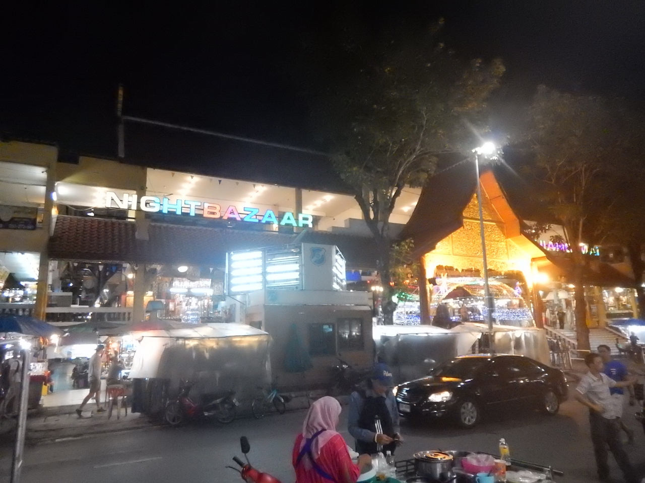 アヌサーン市場もナイトバザールの一部のようなものだと思っているが、市場を出てチャンクラン通りを歩いてみた。歩道の両側にはTシャツや民芸品などの露店が並んでいる。特に買いたいものはないが見て歩く。ナイトバザールと書いてあるビルが見えてきたので入ってみた。