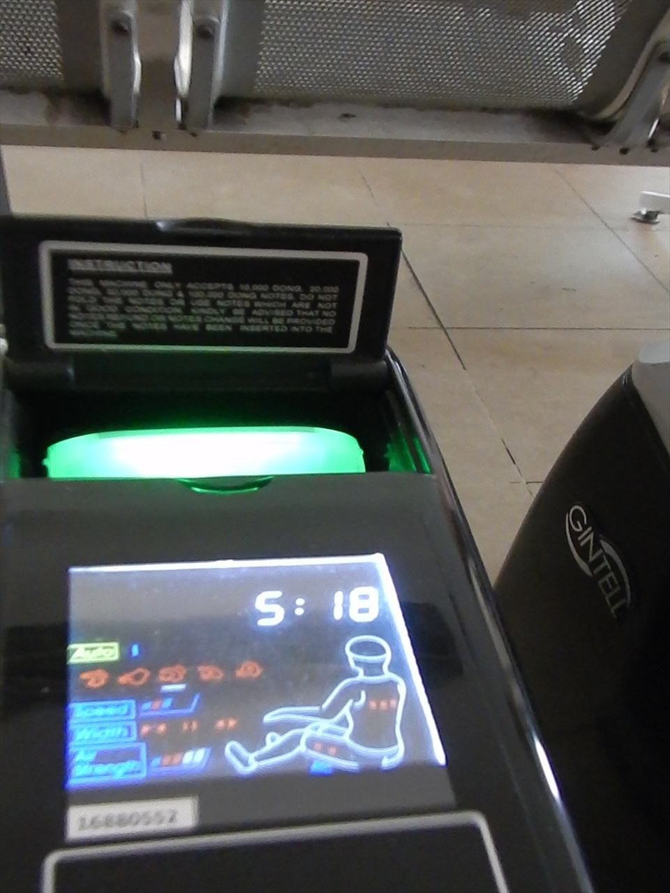ダナン駅構内に、コインマッサージ機ならぬ、お札のマッサージ機がありました。