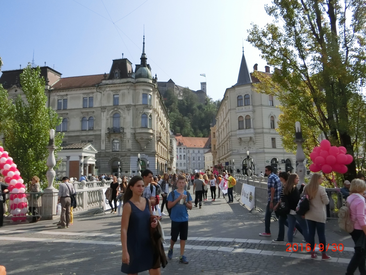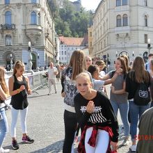 リュブリャニツァ川に掛かっている橋、3つが並んであります。