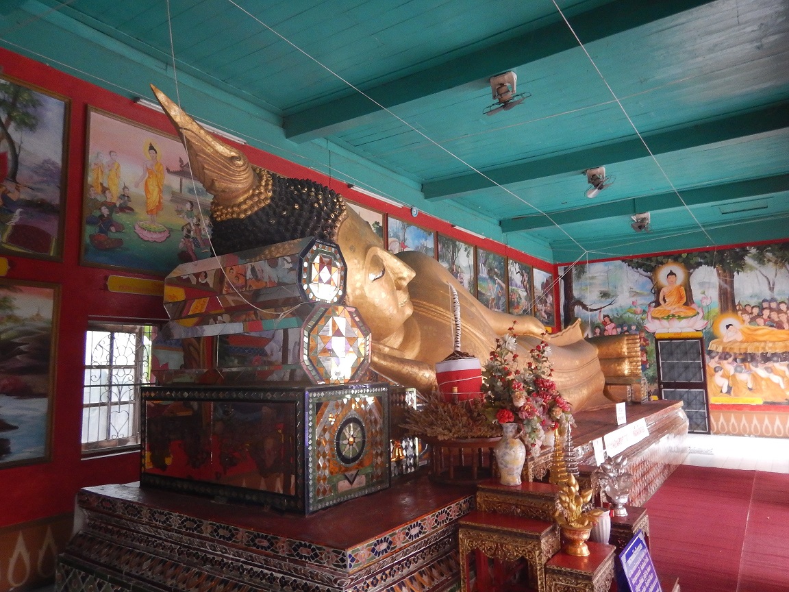 ラチャマンカ通りとサムラーン通りの交差点を左に曲がるとあった。600年近い歴史のある仏像があるそうだが、どれだか見つけることができなかった。本堂の建物は修復されているのかきれいだった。また境内には大きな寝釈迦像があることに驚いた。釈迦像の周囲には入滅時の様子などを描いた壁画があった。