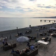 ニースに来てビーチに来ない人はいないと思います。3月に滞在したため、泳ぐ人はあまり多くいませんでしたが、日中の気温は温かいので、砂浜でリラックスしている人はちらほらいました。また、海岸のオープンカフェが人気でした。