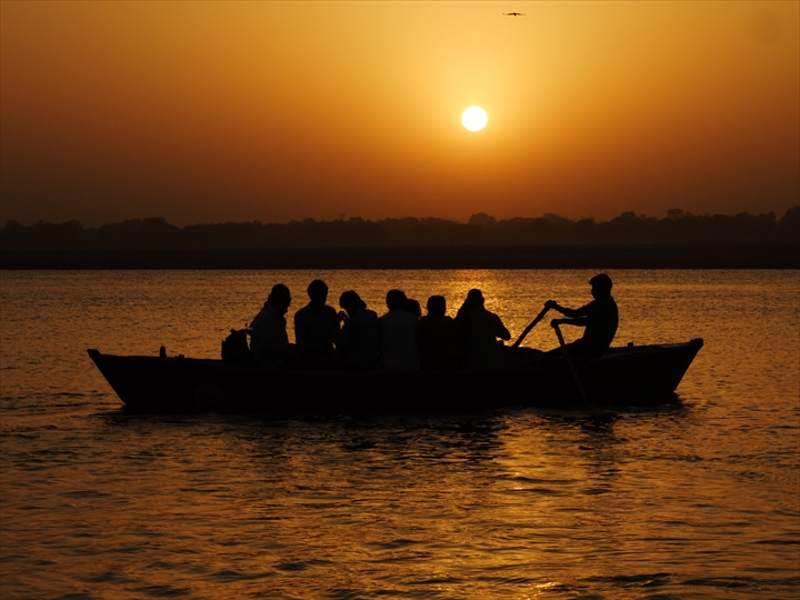 宿からガンガが見えない人は、ボートを雇って川の上で朝日を拝むもよし。