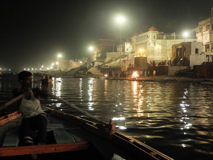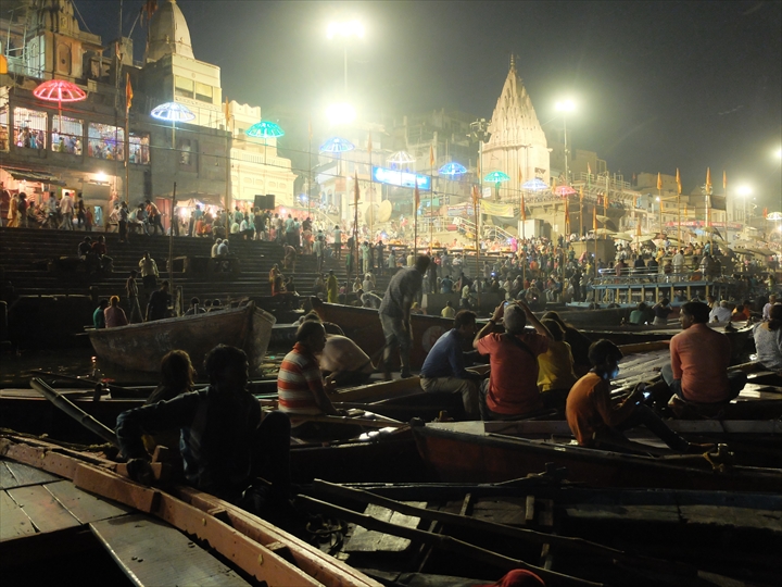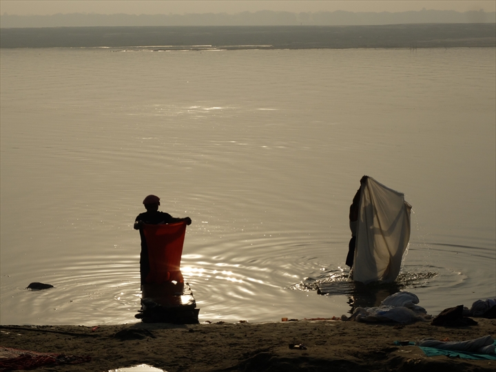 その合間には、朝の内に洗濯物を洗い上げてしまおうとする洗濯屋さんがいるかと思えば、荼毘の煙の上がるガートもあって、ガンガは人々の祈りもこの世の穢れもすべて飲み込んで流れ去る河、と言うのが実感できると思います。