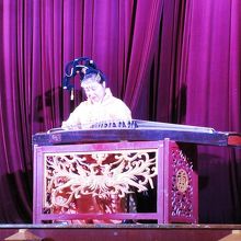 円卓を囲みながら、陝西省・西安の名物料理を食べましたが、舞台上では女性が「胡弓」を演奏。ゆったりとした時間が流れていました。