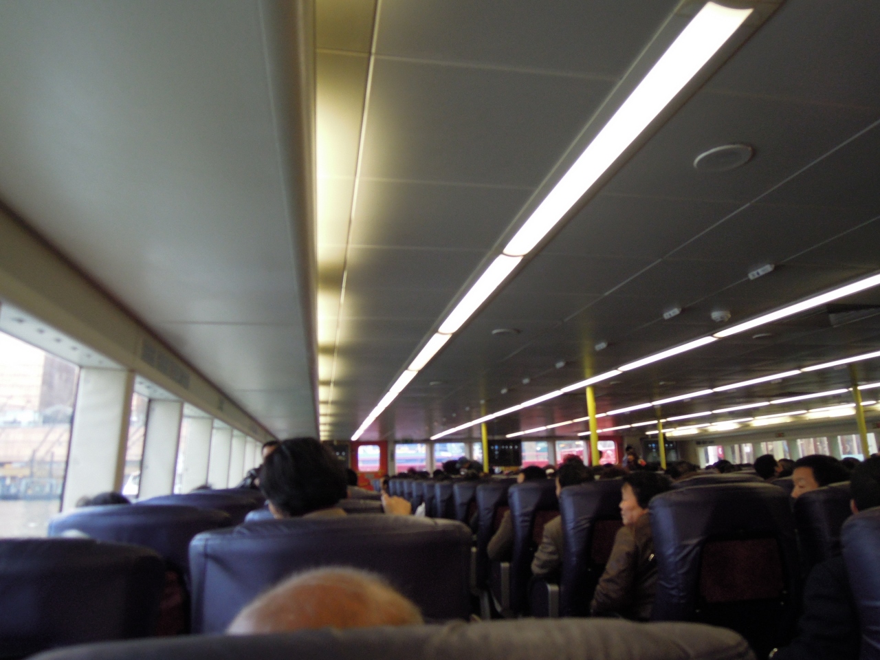 マカオ行きの高速フェリー。その名もターボジェット。中国語では「噴射飛航」。名前通り、ものすごい水飛沫で船が進み、ジェットコースターのような揺れが一時間続き‥朝ごはんを食べず空腹だったため、見事に酔ってしまいました。乗り物には強いので、酔ったことなんてほとんどないのですが、フラフラのままにマカオ上陸‥想定外でした。