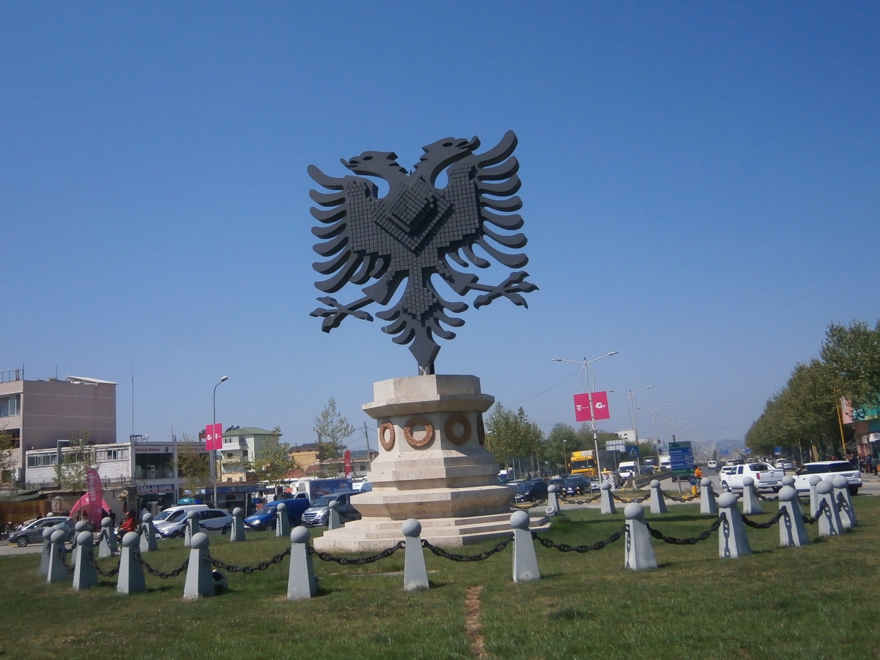 空港と市内を結ぶエアポートバスが通る道路で、アルバニアの国旗にも採用されている双頭の鷲のモニュメントが建つDoganaの交差点を越えた所です。