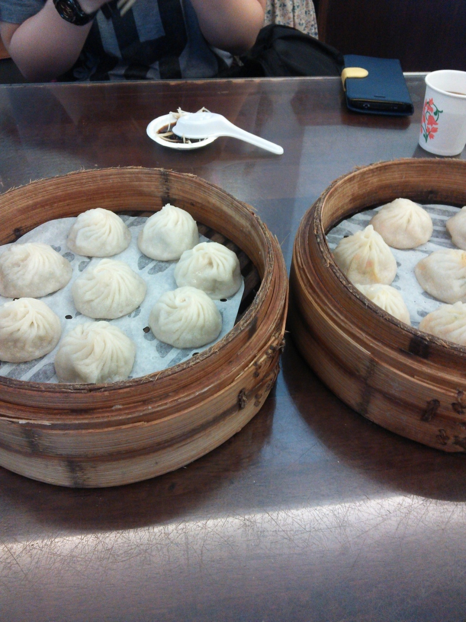 お店はドリンクのカップは紙コップだったり、とかなりカジュアルでしたが、小籠包は本確的。皮は薄目ですが、一つ一つは大きめでした。