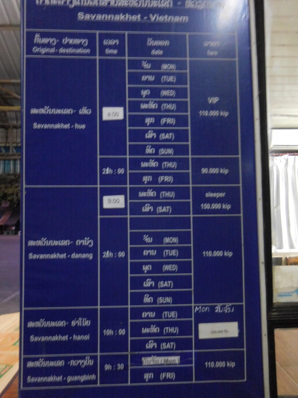 タイ・ベトナムとの国際バスとラオス各地とを結ぶバスが発着します。市内に複数のバスターミナルがある町もありますが、サワンナケートのバスターミナルはここだけです。
