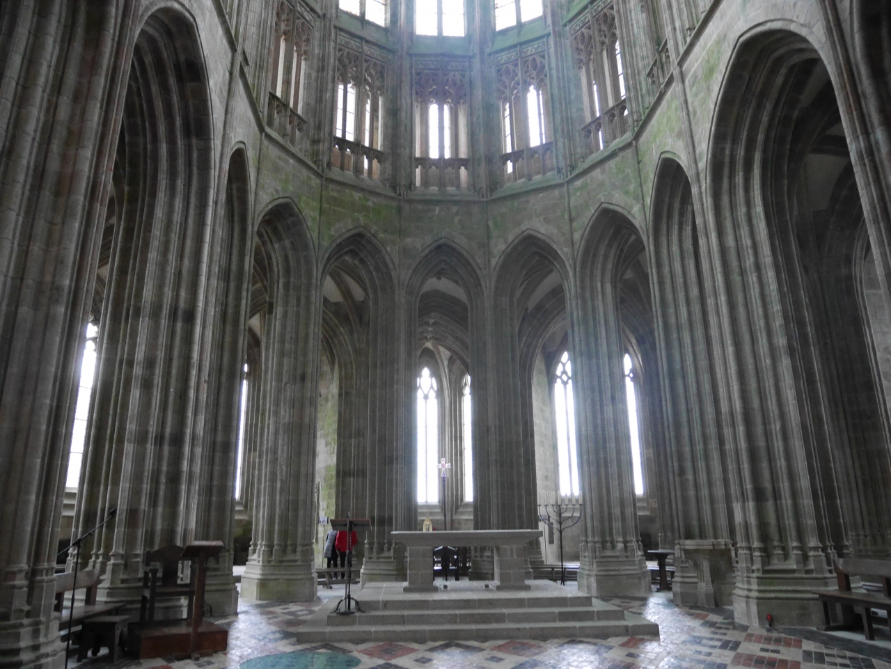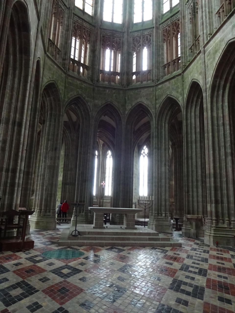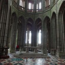 時間をかけて修復を繰り返したのか、本堂北側はロマネスク様式、内陣と後陣はゴシック様式と混在して、それが見事なコントラストを見せています。天井が高く厳粛な雰囲気に圧倒されます。